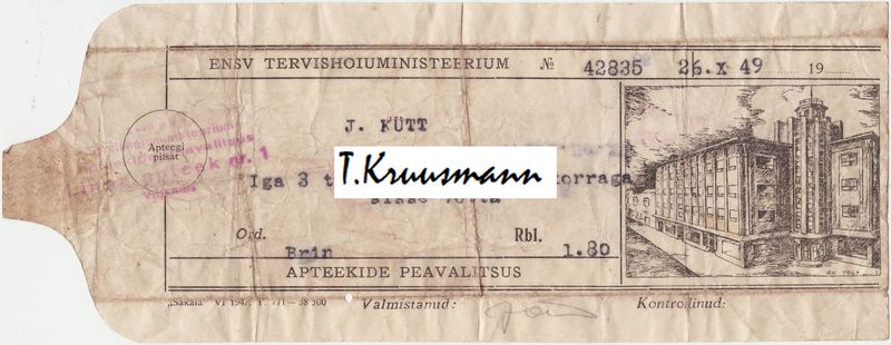 Pilt 1 - Linna_apteek_nr1_Viljandis_ENSV