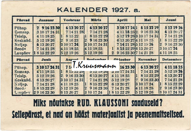 Pilt 1 - R_Klausson_Tallinn_kalender_1927_A