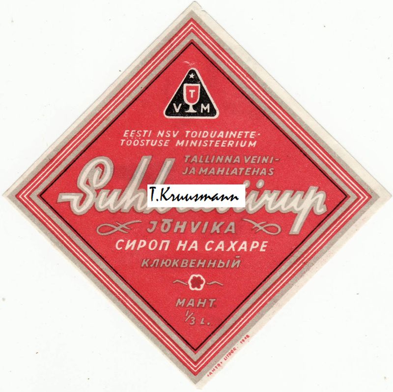 Pilt 1 - ENSV_Tallinna_Veini_ja_Mahlatehas_Suhkrusiirup_Jõhvika