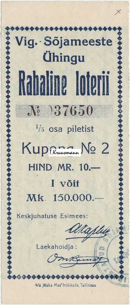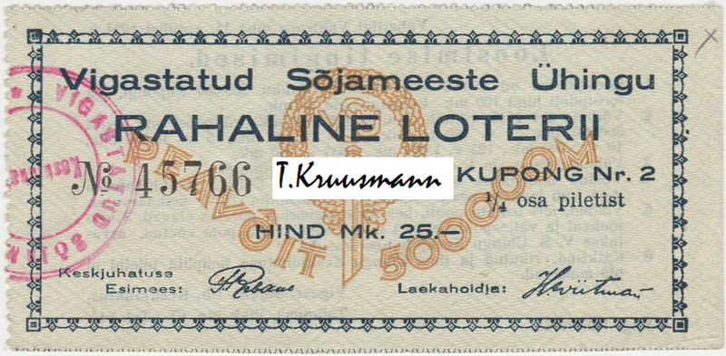 Pilt 1 - Vig._Sõjameeste_Ühingu_Kupong_2_17.02.1922