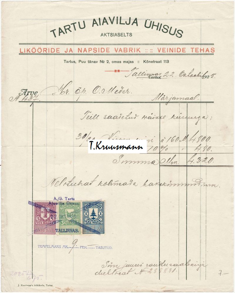 Pilt 1 - Tartu_Aiavilja_Ühisus_Arve_N_437