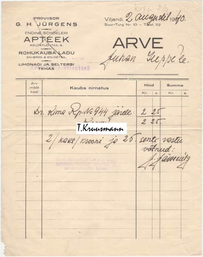 Pilt 1 - G_H_Jürgens_Viljandis_Limonaadi_ja_seltersi_tehas_arve